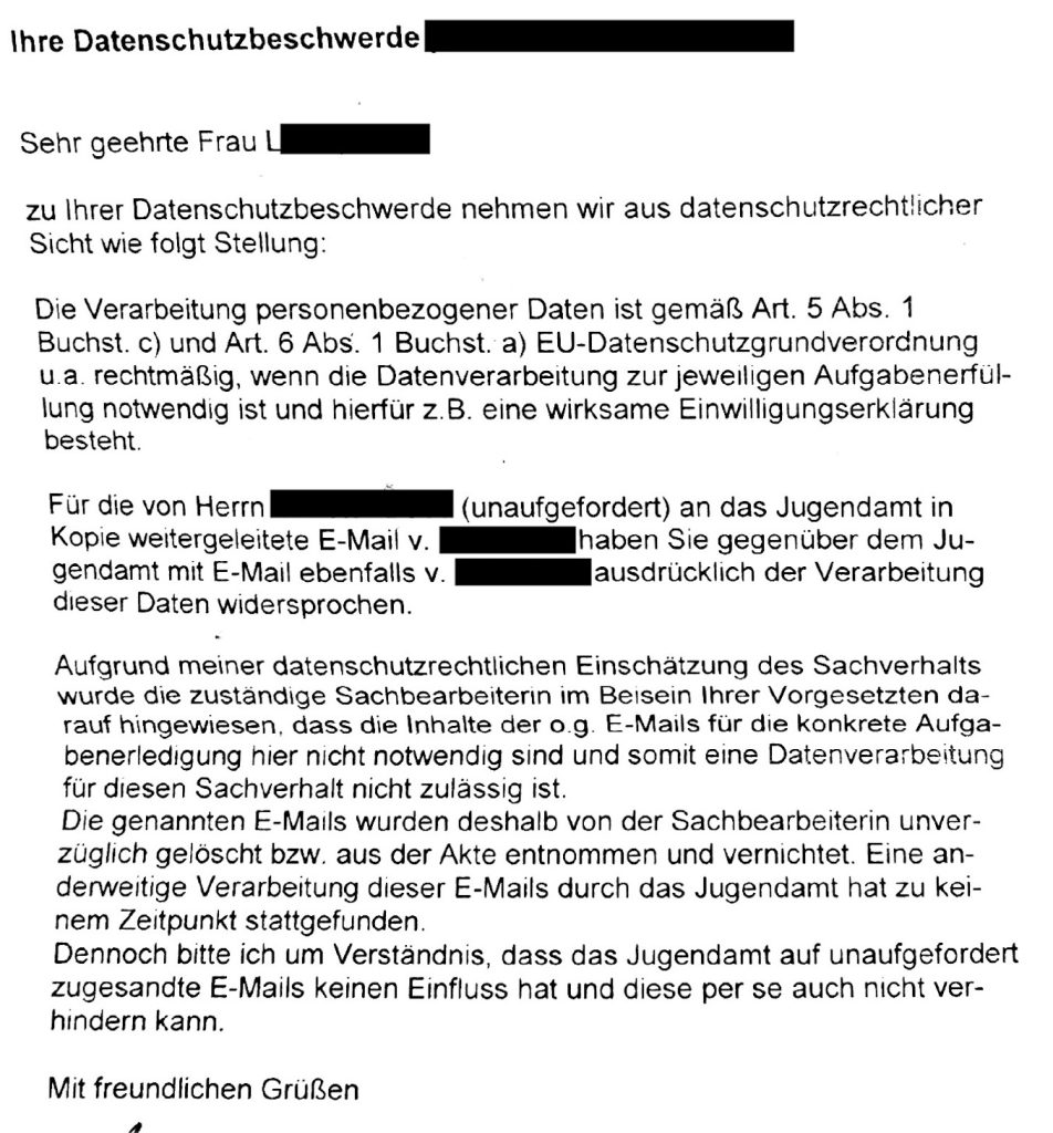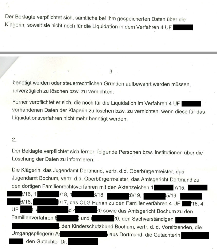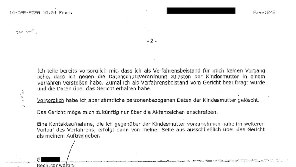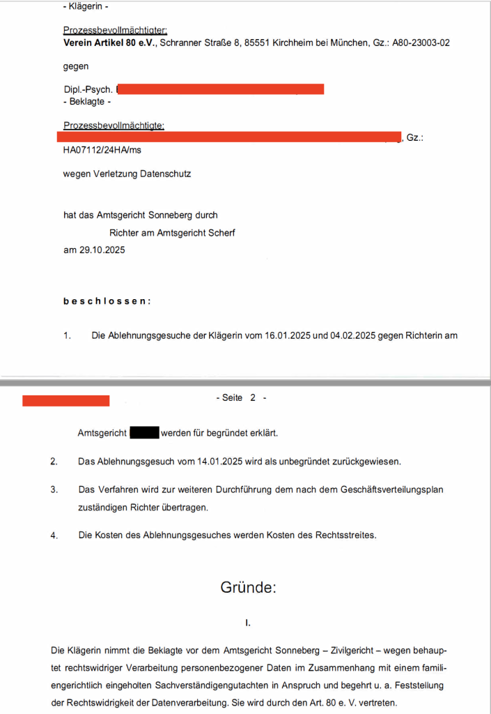 Prüfung und unsere Klage gegen einen Verfahrensbeistand wegen rechtswidriger Datenverarbeitung in Stellungnahmen